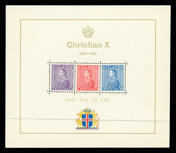 6204 nh B5 image1937, King Christian X souvenir sheet of 3 (Scott B5), o.g., never hinged, Extremely Fine.
