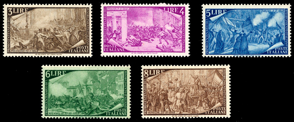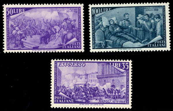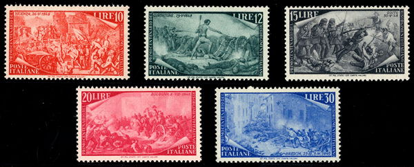 6217 nh 495-506 & E26 image1948, 3l-100l Revolutionary Scenes, complete (Scott 495-506 & E26), set of 13, o.g., never hinged, Fine to Very Fine, with 1983 Giordani certificate.