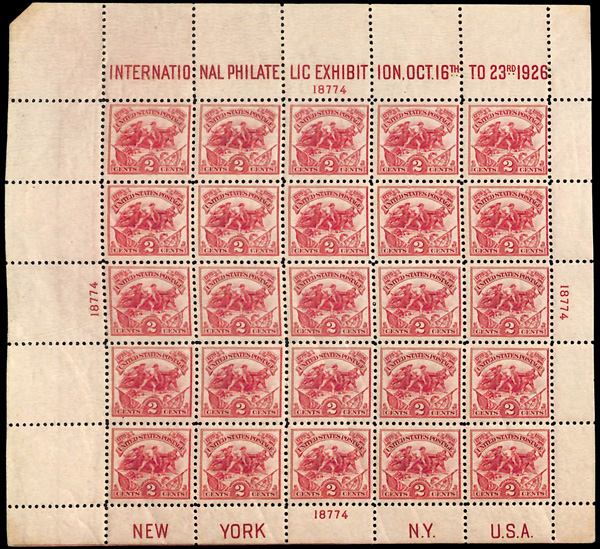 5238 nh 630 image1926, White Plains souvenir sheet of 25 (Scott 630), o.g., never hinged, Fine to Very Fine.