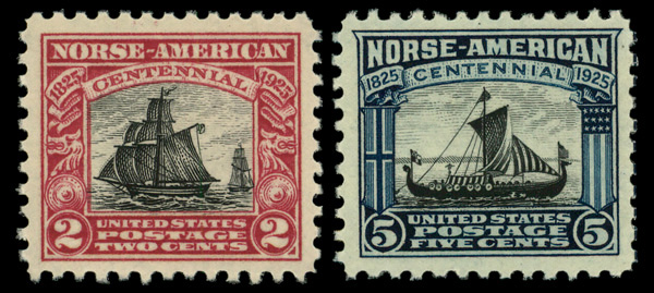 5232 nh 620-621 image1925, Norse-American complete (Scott 620-621), set of 2, o.g., never hinged, Extremely Fine.