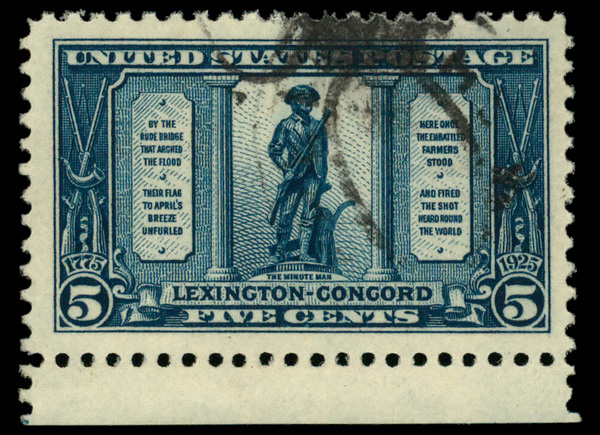 5230 O 619 image1925, 5¢ Lexington-Concord (Scott 619), large margins, Extremely Fine.