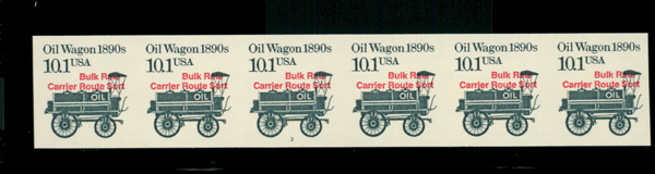 5324 nh 2130b image1985, 10.1¢ Oil Wagon, horizontal coil, imperf. pair, untagged (Bureau precancel in red) (Scott 2130b), plate #3, o.g., never hinged, Extremely Fine.