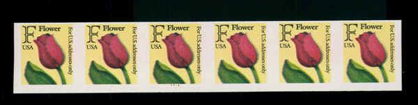 5328 nh 2518a image1991 (29¢) "F" Tulip, horizontal coil, pair (Scott 2518a), plate #1111, o.g., never hinged, Fine.