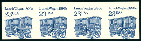 5325 nh 2464b image1991, Transportation Issue, 23¢ Lunch Wagon, prephosphored coated paper, imperf. pair (Scott 2464b), o.g., never hinged, Fine.