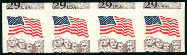 5329 nh 2523b image1991, 29¢ Flag over Mt. Rushmore, engraved coil, imperf. pair (Scott 2523b), miscut, o.g., never hinged, Very Fine to Extremely Fine.