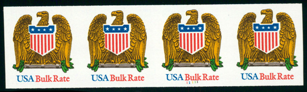 5331 nh 2603a image1993 (10¢) Eagle & Shield, "USA Bulk Rate", golden brown eagle, imperf. pair (Scott 2603a), o.g., never hinged, Very Fine to Extremely Fine.