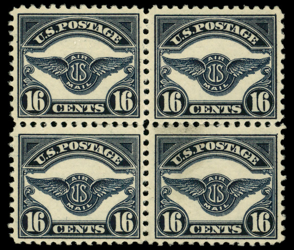 5342 nhbl C5 imageAirmail, 1923, 16¢ dark blue (Scott C5), block of 4, o.g., never hinged, Fine to Very Fine.