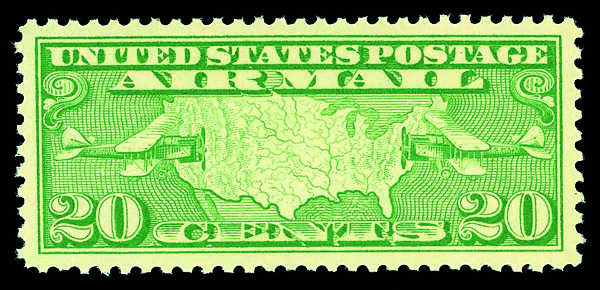 5337 nh C2 imageAirmail, 1918, 16¢ green (Scott C2), o.g., never hinged, Very Fine to Extremely Fine.