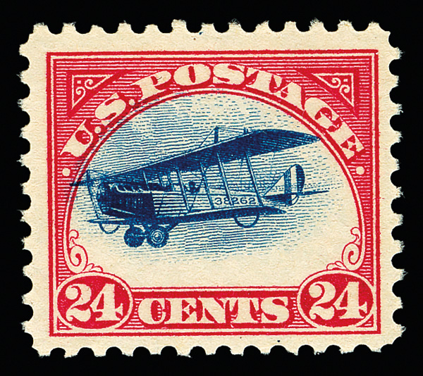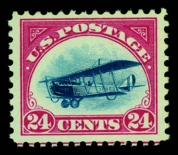 5338 nh C3 imageAirmail, 1918, 24¢ carmine rose & blue (Scott C3), Freshly preserved quality, fast plane variety with massive margins, o.g., never hinged, Very Fine.
