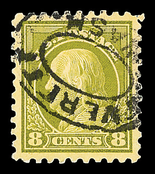 7218 O 470 image1916, 8¢ olive green, unwatermarked, perf. 10 (Scott 470), Extremely Fine to Superb, with 2019 P.S.E. certificate graded XF-SUP 95.