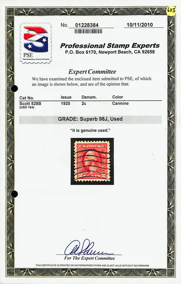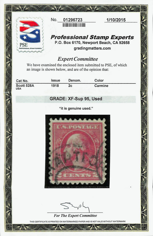 7299 O 528A image1918, 2¢ carmine, type VI, offset printing (Scott 528A), Extremely Fine to Superb, with 2015 P.S.E. certificate graded XF-SUP 95.