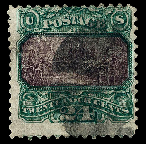 8032 O 120 image1869, 24¢ green & violet (Scott 120); tear & reperfed at left, Very Good, with 2025 P.S.E. certificate.