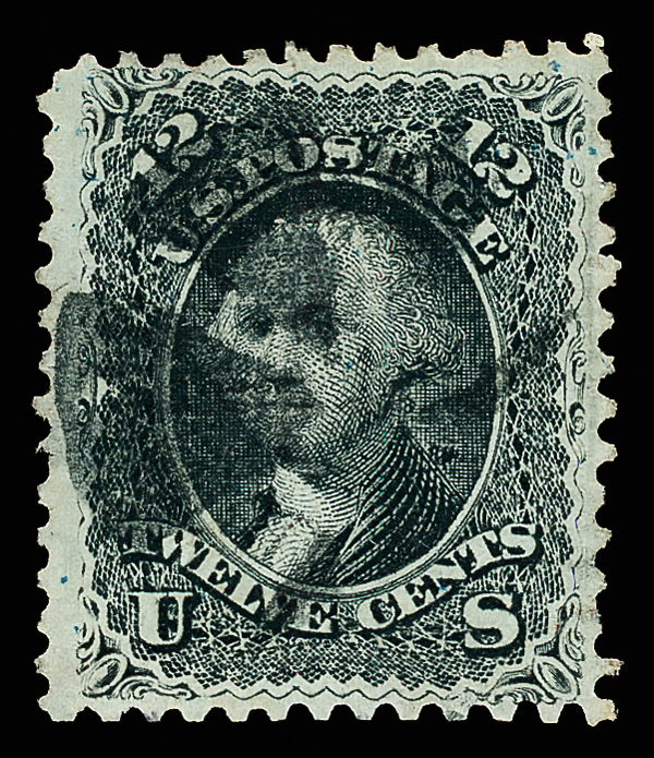 8021 O 90 image1867, 12¢ black, E. grill (Scott 90), clean and sound with razor-sharp detail in strong color; circle-of-wedges cancel, Very Fine.