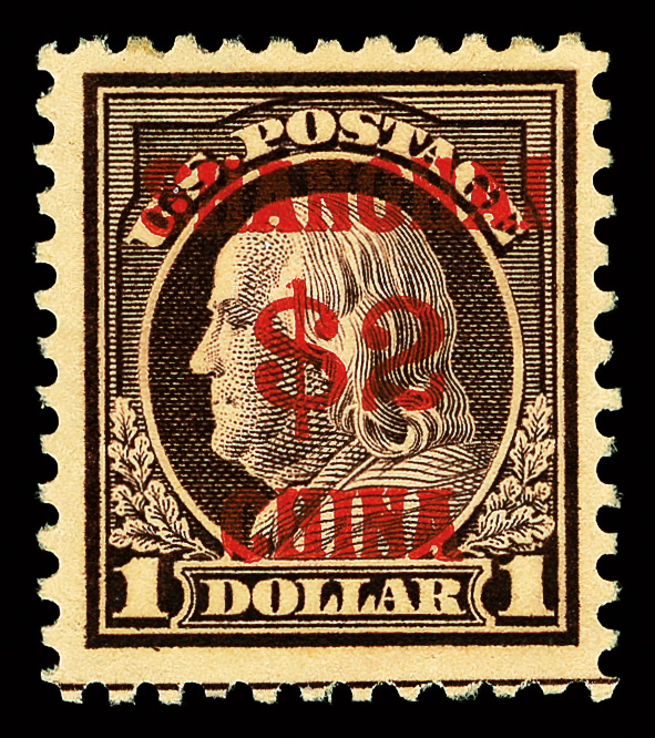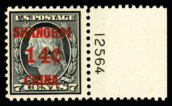 8361 nh K7 imageOffices in China, 1919, 14¢ on 7¢ black (Scott K7), single with plate number, Razor-sharp engraving detail, o.g., never hinged, Fine to Very Fine.
