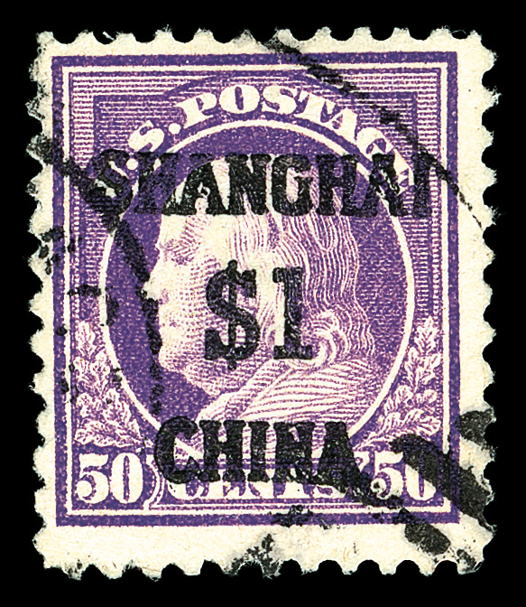 8369 O K15 imageOffices in China, 1919, $1 on 50¢ light violet (Scott K15), Rich vivid look, Fine to Very Fine.