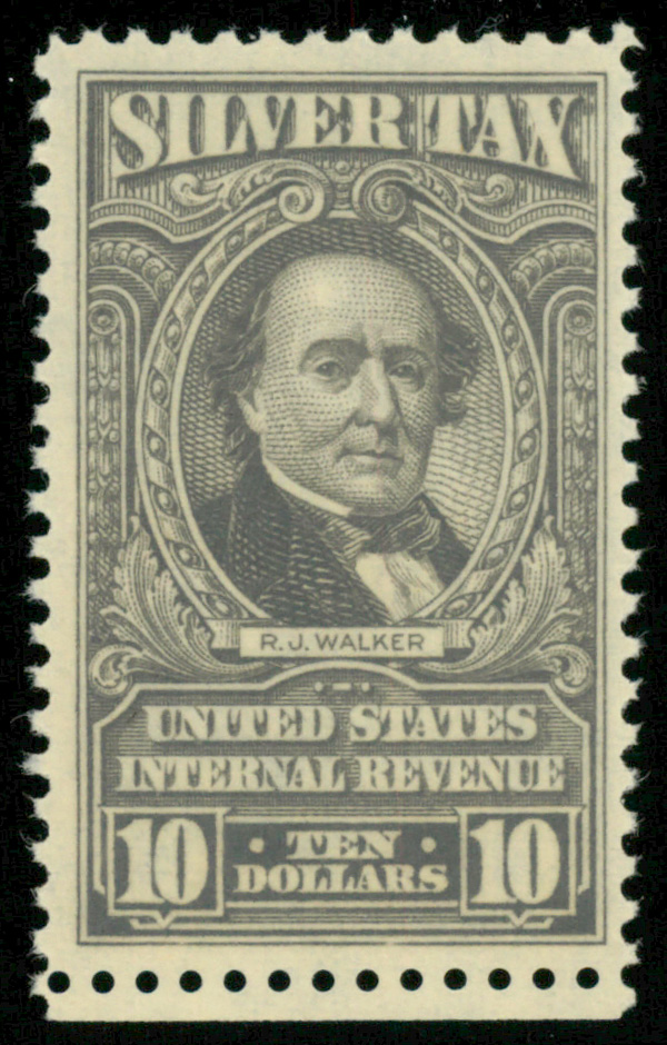 8427 nh RG125 imageSilver Tax, 1944, $10 gray (Scott RG125), o.g., never hinged, Very Fine.