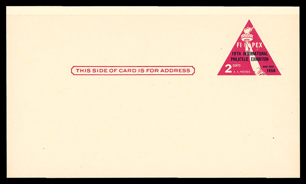 8407 og UX44f imagePostal Card, 1956, 2¢ FIPEX, rose pink & dark violet blue on buff (Scott UX44f), entire, o.g., never hinged, Very Fine.