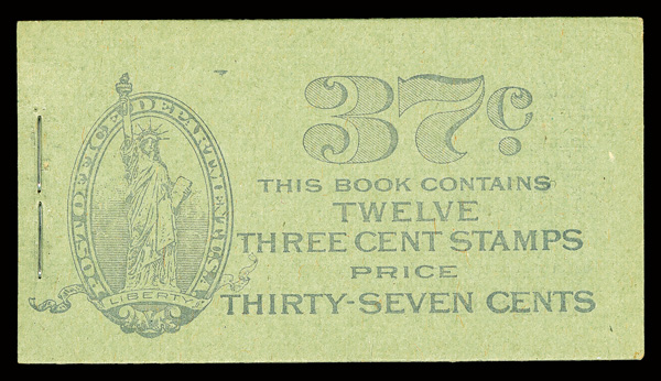 8403 BKnh BK62 imageBooklet, 1918, 37¢, violet on sage cover (Scott BK62), complete and unexploded, Completely unblemished look, o.g., never hinged, Fine to Very Fine.