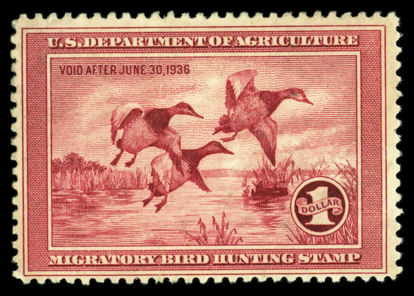 8432 nh RW2 imageFederal Duck Stamp, 1935, $1 Canvasbacks (Scott RW2), o.g., never hinged (gum skip), Fine.