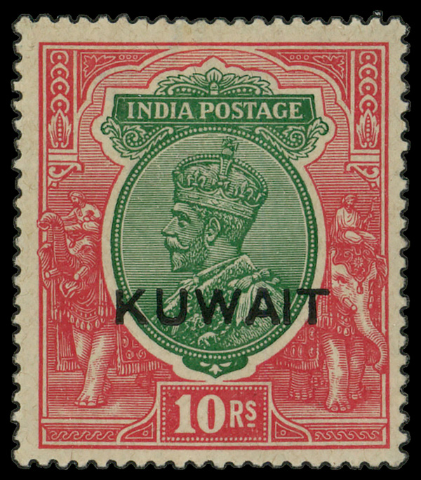 8676 og 15 image1922-1923, King George V 10r carmine & green overprint (Scott 15), single, o.g., hinged, gum slightly disturbed, Fine to Very Fine.