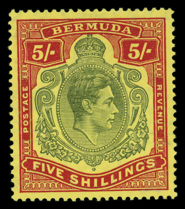 8646 nh 125 var. image1945, King George VI, 5s green & red on yellow (Scott 125 var.), o.g., never hinged, Extremely Fine to Superb.