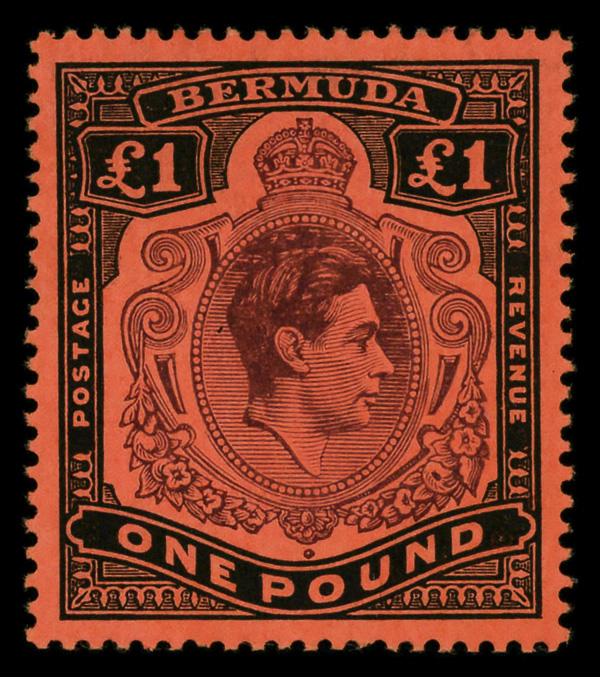 8648 nh 128b var. image1945, King George VI, £1 pale purple & black on pale red, perf. 14 (Scott 128b var.), o.g., never hinged, Extremely Fine.
