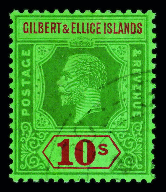 8664 O 31 image1924, King George V, 10s green & red on emerald, Die II (Scott 31), single, Fine to Very Fine.