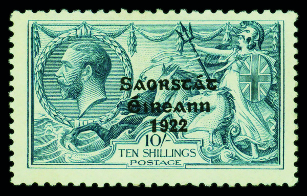 8667 og 79 image1925, Free State overprint on King George V "Seahorse", narrow date, 10s dull gray blue (Scott 79), single, o.g., hinge remnant, nearly Very Fine.