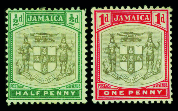 8674 og 33b,34b image1903, Arms of the Colony, ½p & 1p, "SER.ET" for "SERVIET" (Scott 33b,34b), singles, o.g., lightly hinged, Fine to Very Fine.