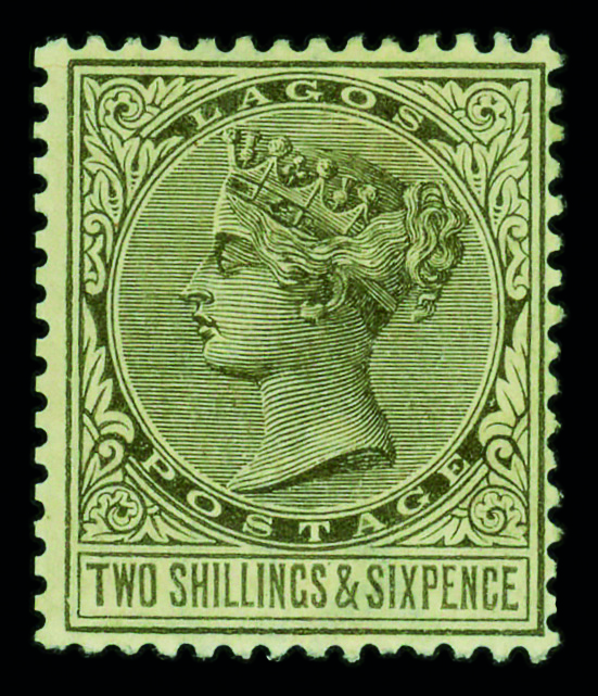 8677 og 33 image1886, Queen Victoria, 2s6d olive black (Scott 33), single, o.g., hinge marks, Fine to Very Fine.