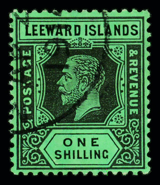 8679 O 59 image1913, King George V, 1s black on green, die I, white back (Scott 59), single, Very Fine.