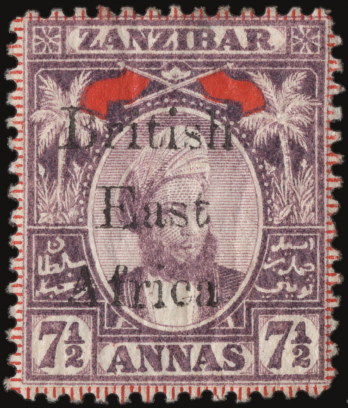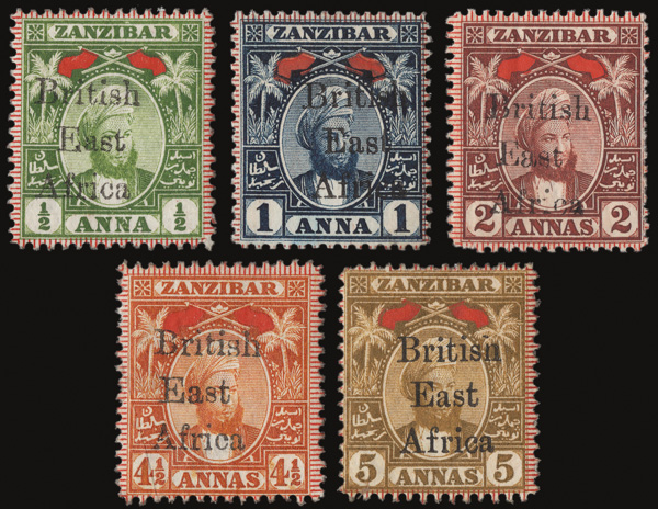 8654 nh/og 88-93 image1897, "British East Africa" on Zanzibar ½a-7½a complete (Scott 88-93), a bright, fresh set, ½a & 7½a o.g., never hinged others regummed (appearing never hinged), Fine to Very Fine.