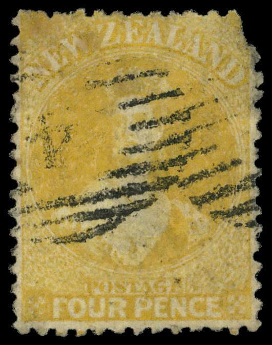 8685 O 35 image1865, Queen Victoria "Chalon Head", 4d yellow, perf 12½ (Scott 35), Large Star watermark; corner tear UR, Very Fine.