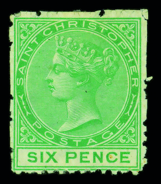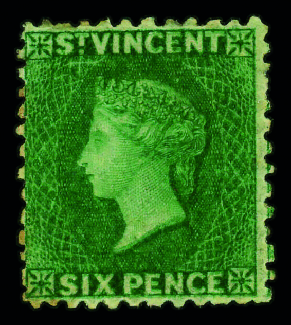 8704 og 3 image1871, Queen Victoria, 6d green, perf 12½ (Scott 3), Crown CC watermark, single, o.g., hinge remnant (album adherence), Fine to Very Fine.