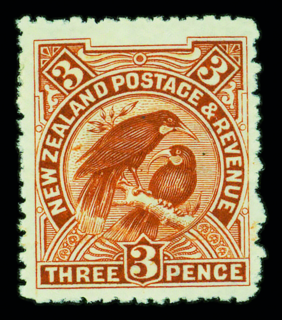 8690 nh 126 image1907, Redrawn Huias, 3d orange brown (Scott 126), Single NZ & Star watermark, single, o.g., never hinged, Fine to Very Fine.