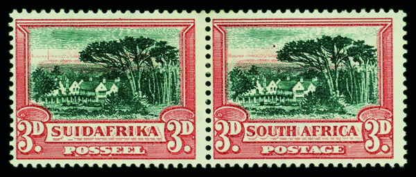 8700 og 38 image1938, Groote Schuur Rhodes's Home 3p red & black (Scott 38), se-tenant pair, o.g., previously hinged, Fine to Very Fine.