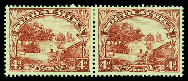 8701 og 40 image1938, Native Kraal 4p red brown (Scott 40), se-tenant pair, o.g., hinge remnant, Fine to Very Fine.