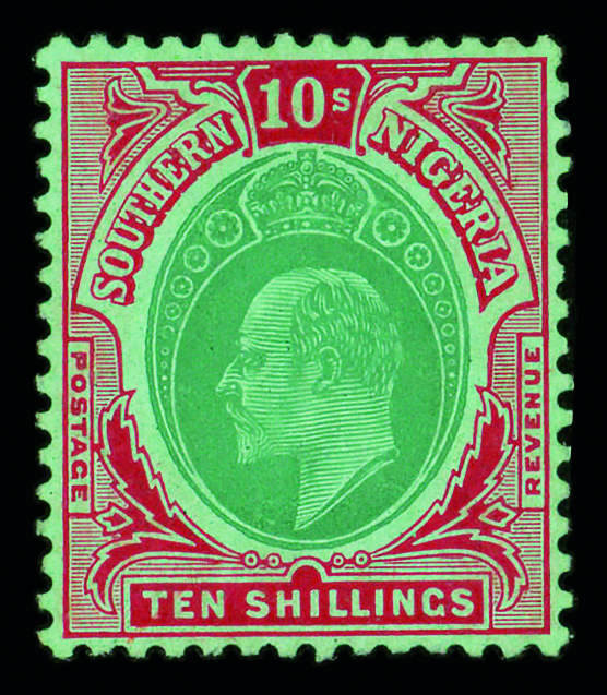 8703 og 42 image1909, King Edward VII, 10s green & red on green (Scott 42), single, o.g., hinge remnants, Fine to Very Fine.