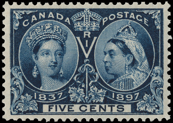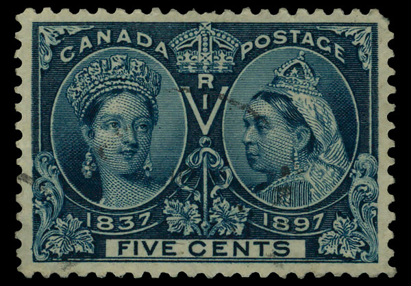 8788 O 54 image1897, Queen Victoria Jubilee, 5¢ deep blue (Scott 54), faint cancel, Extremely Fine.