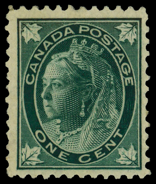 8799 og 67 image1897, Queen Victoria "Maple Leaf", 1¢ blue green (Scott 67), o.g., very lightly hinged, Very Fine.