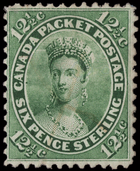 8771 ng 18 image1859, Queen Victoria, 12½¢ yellow green (Scott 18), a most attractive unused example, regummed, fresh and reasonably well centered, Fine to Very Fine.