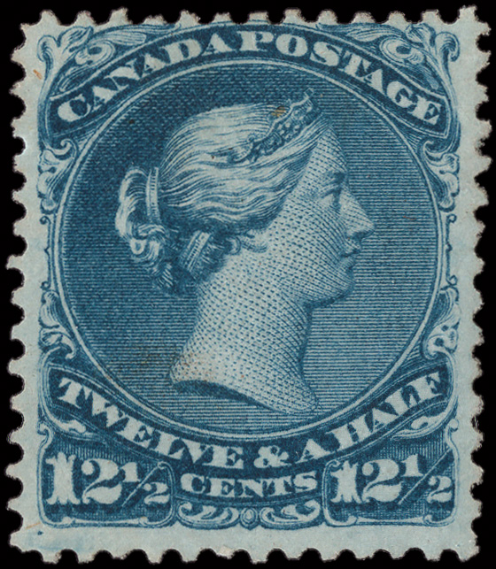 8777 ng 28 image1868, Large Queen, 12½¢ blue (Scott 28), regummed, exceptionally bright and fresh with gorgeous color; perfs barely touching at the top, Fine+.