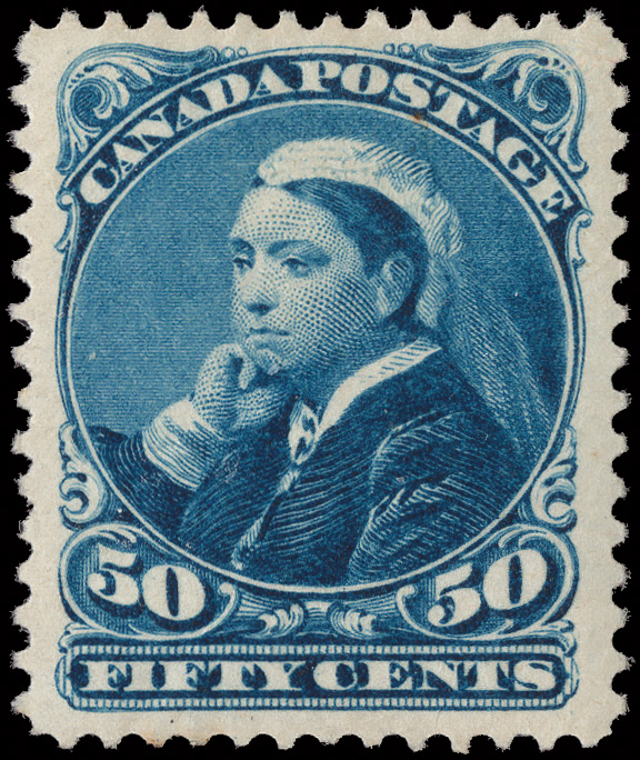 8782 og 47 image1893, Queen Victoria "Widow's Weeds", 50¢ deep blue (Scott 47), fresh and beautifully centered, Very Fine to Extremely Fine.