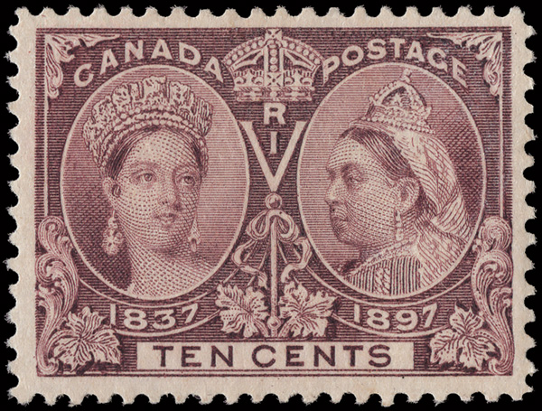 8793 nh 57 image1897, Queen Victoria Jubilee, 10¢ brown violet (Scott 57), o.g., never hinged, fresh and nicely centered, Very Fine.