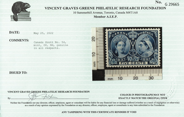 8787 nh 54 image1897, Queen Victoria Jubilee, 5¢ deep blue (Scott 54), an extraordinary mint single, o.g., never hinged, post office fresh and mathematically centered with fresh and bright color and contrast, a Superb Gem! with a 2022 Greene Foundation certificate.