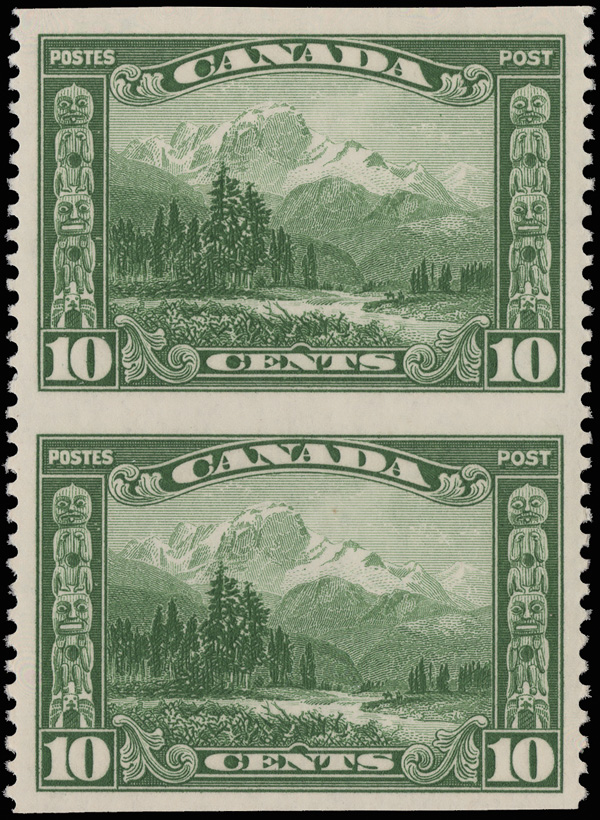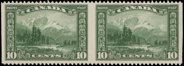 8885 nh 155b image1928, 10¢ Mt. Hurd, horizontal pair, imperf vertically (Scott 155b), o.g., never hinged, fresh and nicely centered, Very Fine. 250 pairs are believed to exist, with a 2018 P.S.E. certificate graded VF 80.