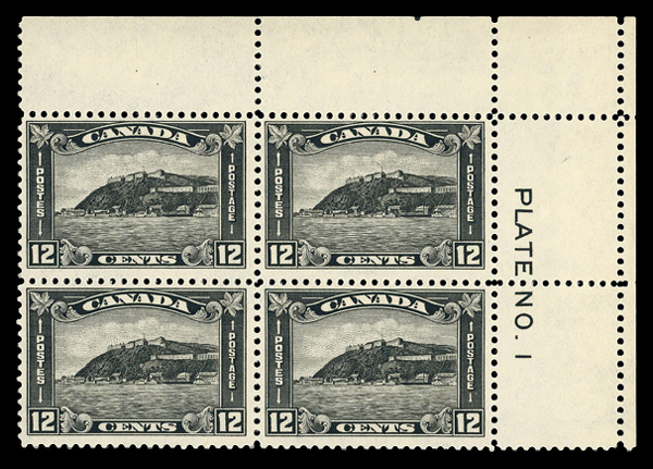 8901 nhbl 174 image1930, 12¢ Quebec Citadel (Scott 174), plate block of 4, o.g., never hinged, Fine to Very Fine.