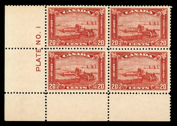 8903 nhbl 175 image1930, 20¢ Harvesting Wheat (Scott 175), plate block of 4, o.g., never hinged, Very Fine.