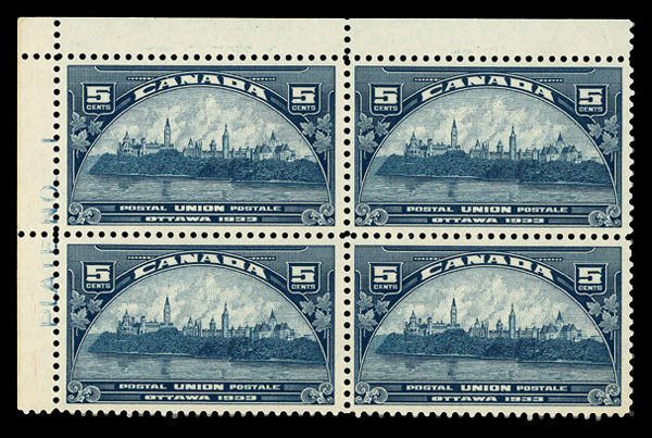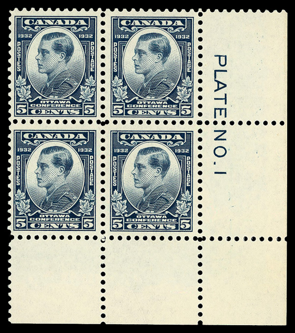 8911 nhbl 193 image1932, 5¢ Ottawa Conference (Scott 193), plate block of 4, o.g., never hinged, Very Fine.