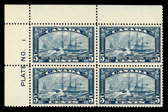 8918 nhbl 204 image1933, 5¢ Steamship Royal William (Scott 204), plate block of 4, o.g., never hinged, Superb.